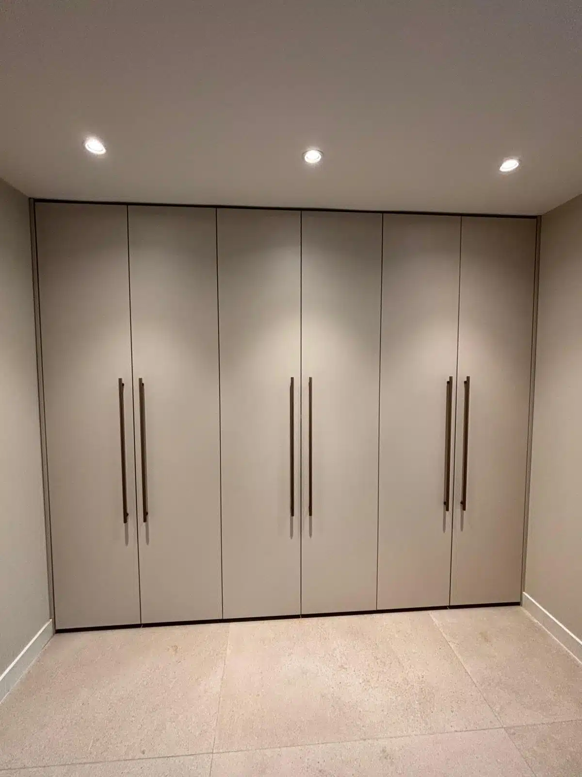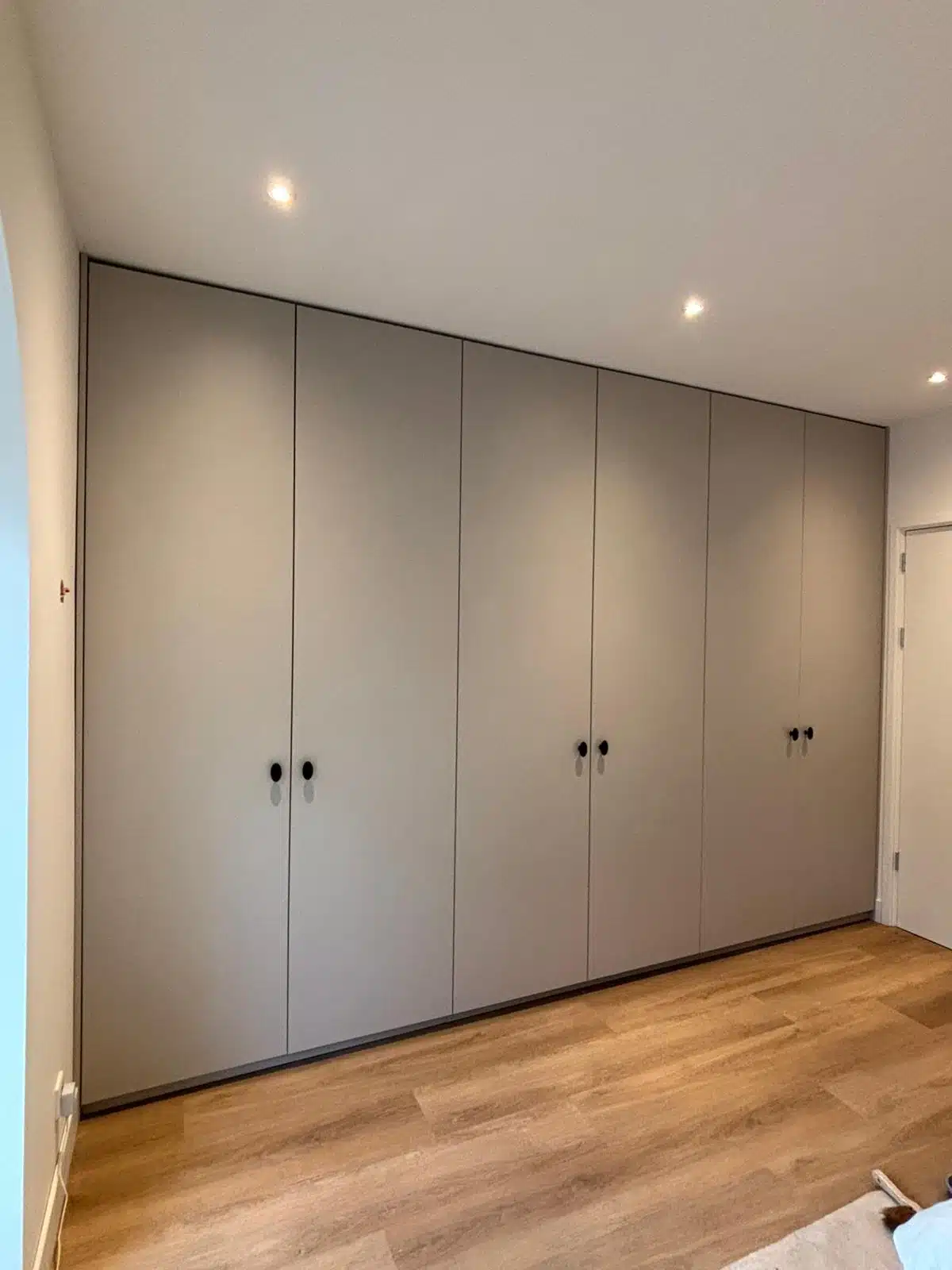 Moderne kledingkast met nieuwe schuifdeuren op maat, perfect passend in een nisconstructie.