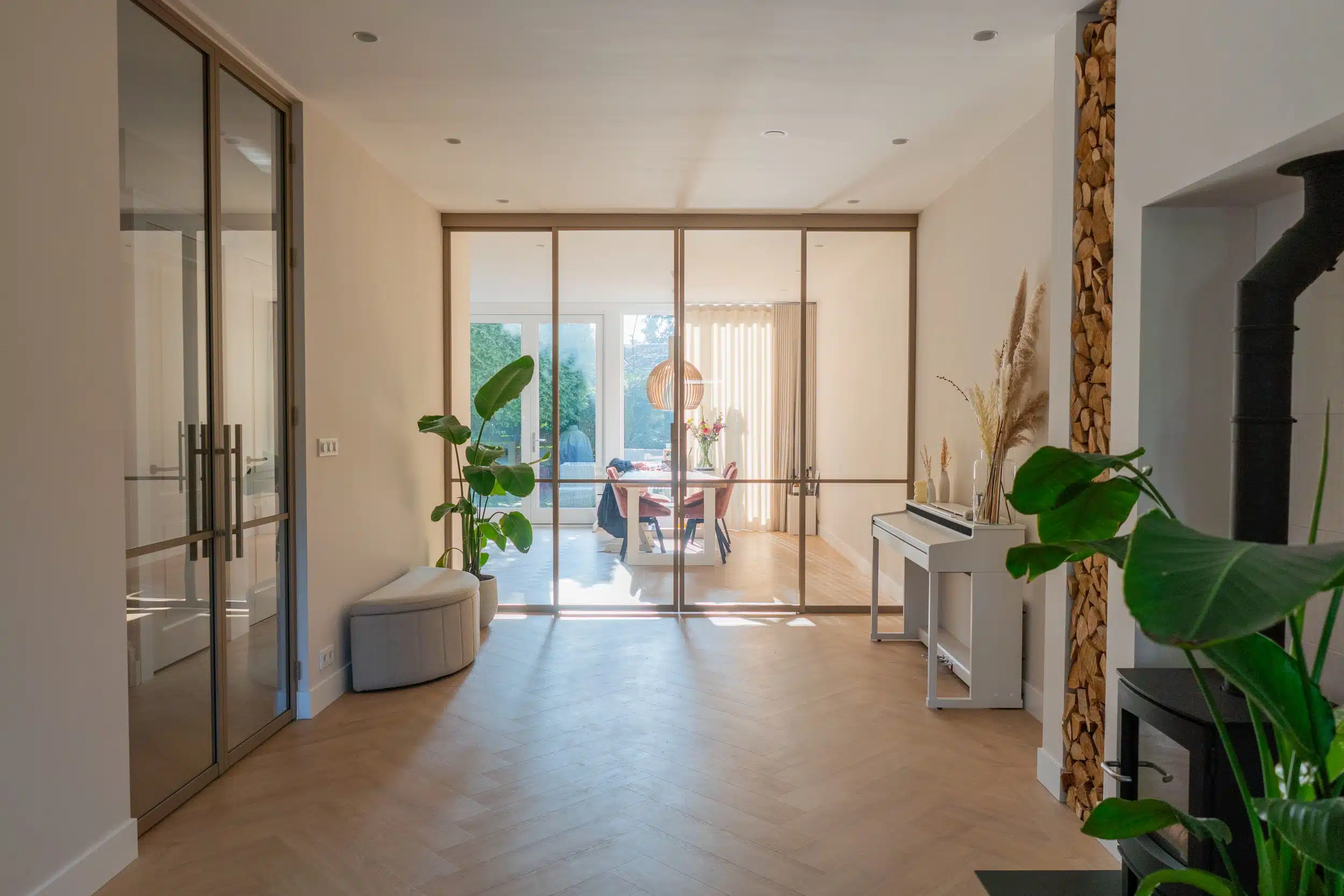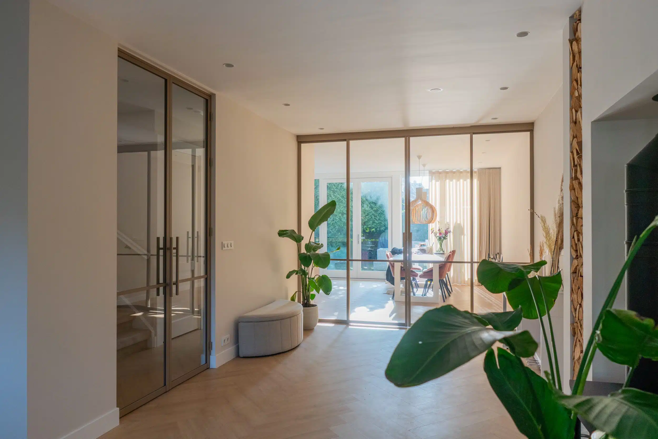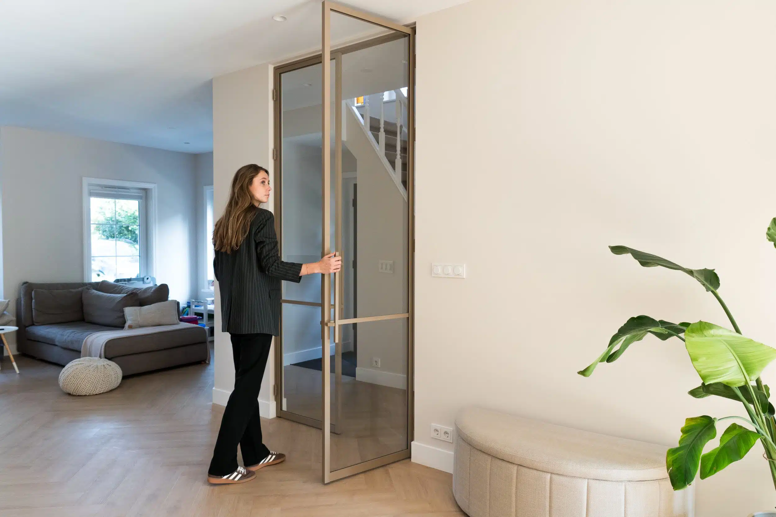 Een scharnierdeur opent naar één kant en sluit strak aan in het kozijn. De aluminium scharnierdeuren van Stipt Op Maat hebben dezelfde uitstraling als staal, maar zijn lichter, duurzamer en hoeven niet in de vloer te worden bevestigd. Door de montage aan de zijkant van de deurpost zijn ze ideaal bij vloerverwarming. Daarnaast zijn onze deuren en wanden geschikt voor zowel buitengebruik als badkamers.